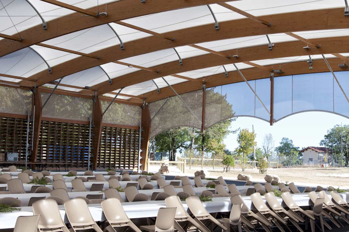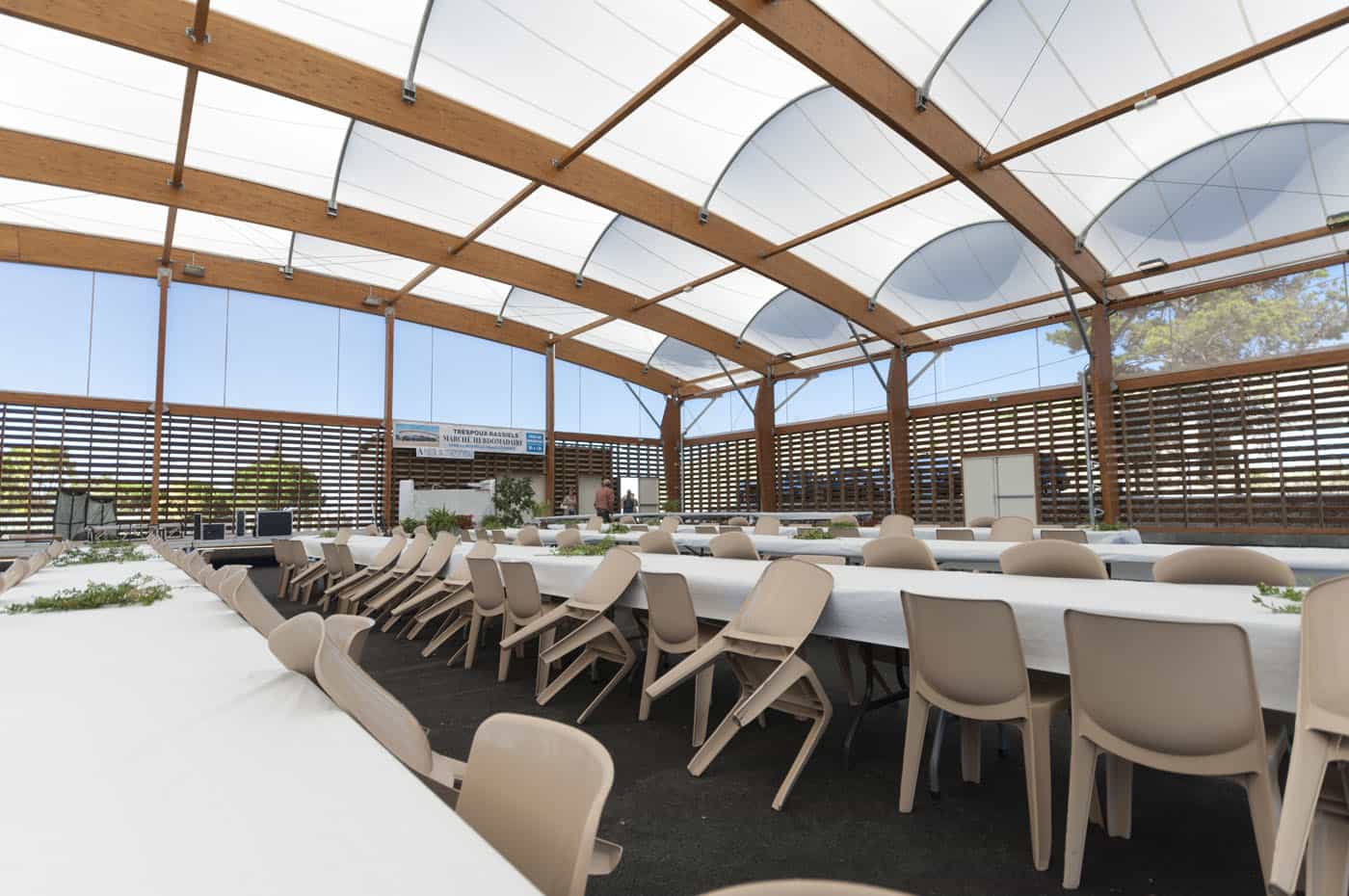 Espace polyvalent de plein air couvert.