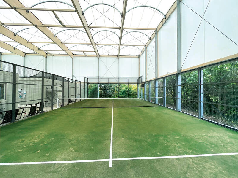 La membrane textile, quant à elle, permet aux terrains de padel de bénéficier d’une belle lumière naturelle grâce à sa translucidité. Sa couleur blanche renvoie les rayons du soleil, évitant une condensation de chaleur. La souplesse de la toile tendue limite la réverbération du son.