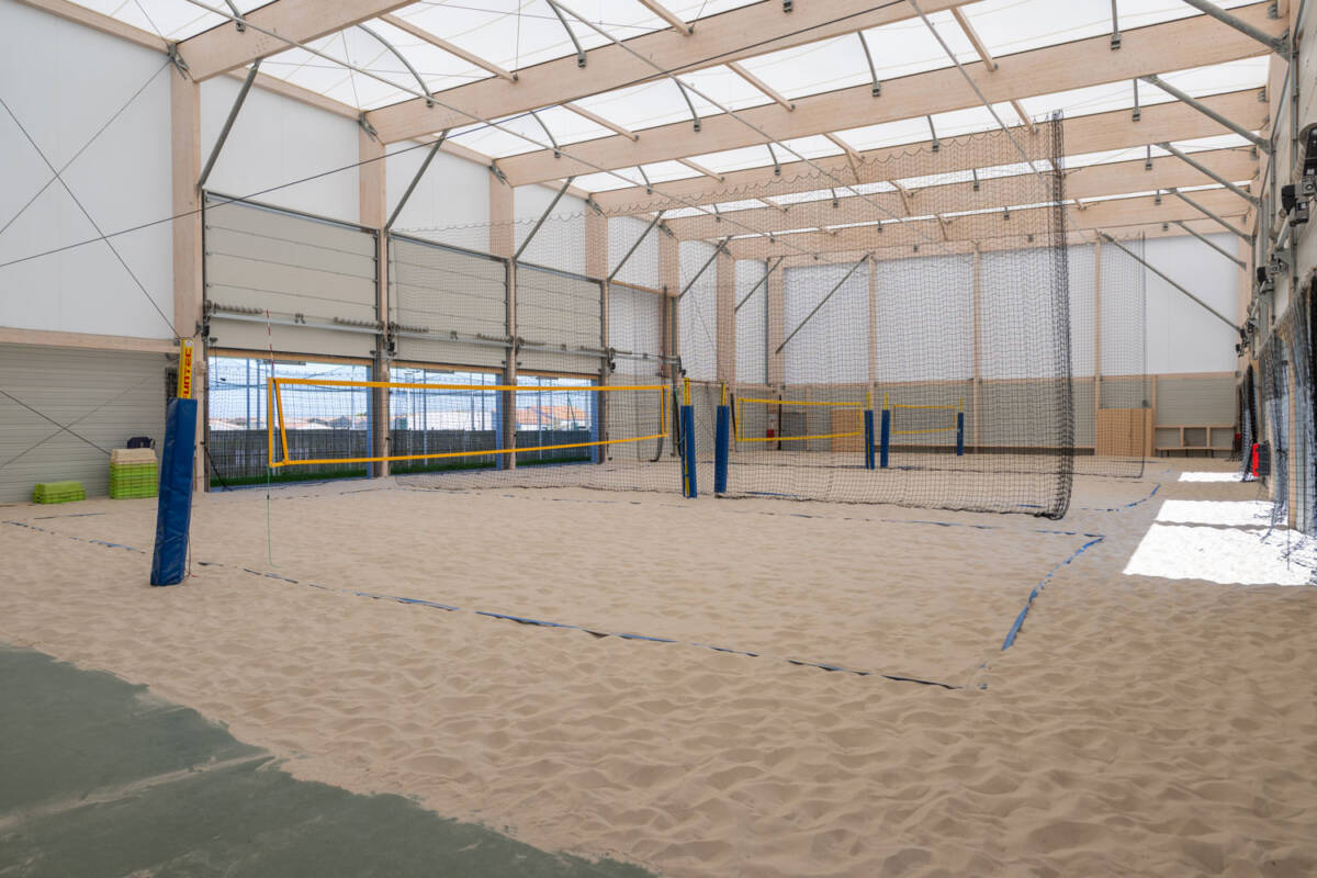 The building includes 20m/65ft linear of sectional doors on each side, allowing for generous openings to the outdoors. These openings provide effective natural ventilation, essential for user comfort throughout the year. They also create a direct connection to the outside environment, in keeping with the original spirit of sand sports, which are inherently outdoor activities. Thanks to these doors, users enjoy a sense of space, light, and freedom, reconnecting with the essence of the sport while remaining protected from the weather.