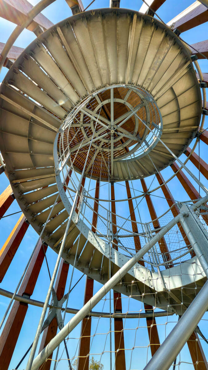 Featuring a mixed timber-and-metal structure, the belvedere spans 78 m² / 840sq ft and rises nearly 20 meters / 65 feet high. Built in the heart of the Natura 2000 zone of the Teich Ornithological Park, it perfectly reflects the values of the town, proudly described as “chosen by nature.”