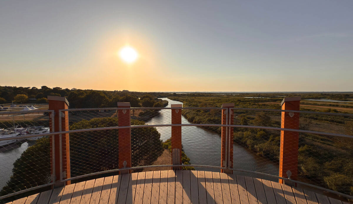 From the top of the belvedere, the 360° panoramic view is spectacular. Visitors can admire the Leyre delta, its marshes, rivers, and the diverse birdlife of the Teich. The view over Arcachon Bay completes this exceptional panorama, offering a true “balcony on nature.”