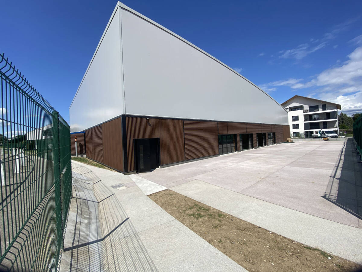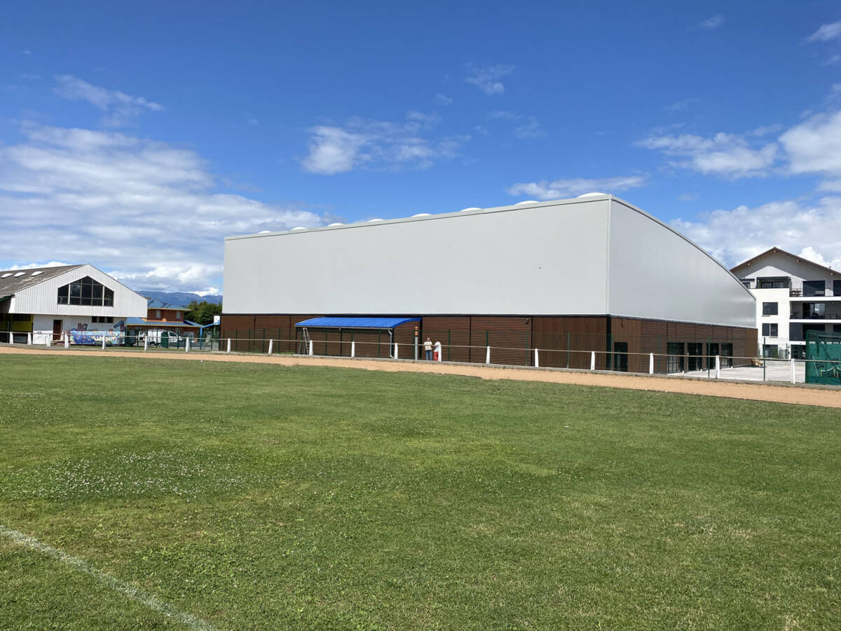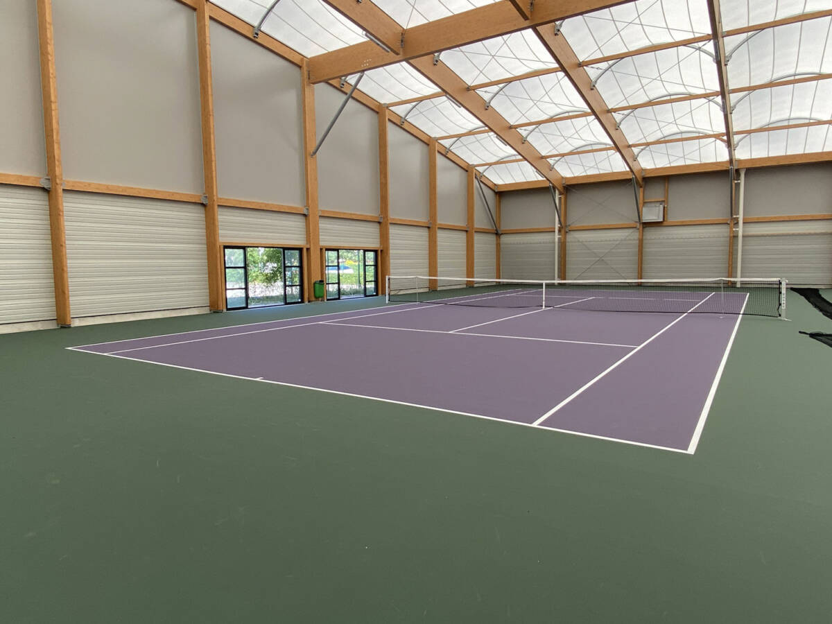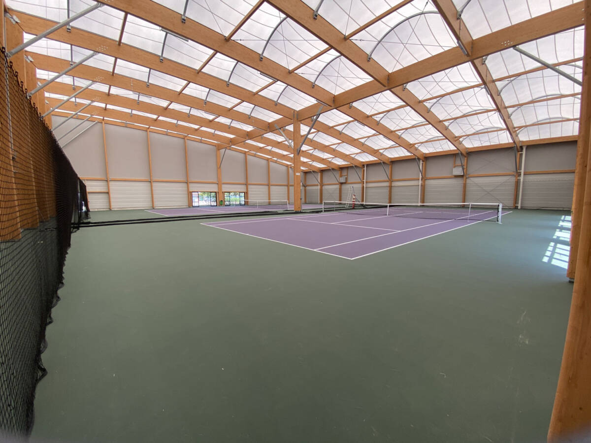 The municipality of Douvaine, located in Haute-Savoie, has recently added two covered tennis courts, providing athletes with a modern and comfortable new space to play. This well-designed architectural project is built on a light yet durable structure, composed of a mixed frame combining glued laminated timber and galvanized steel, topped with a tensioned textile membrane for the roof.